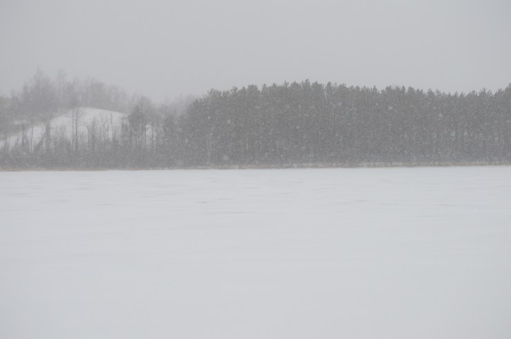 My person ducked into Mr. Nishan’s machine shed, and we waited it out. The wind blew all around and snow continued to fall as we waited. It was really cold, so we were glad to be out of the wind.