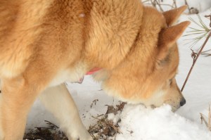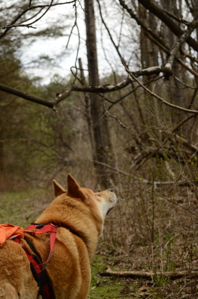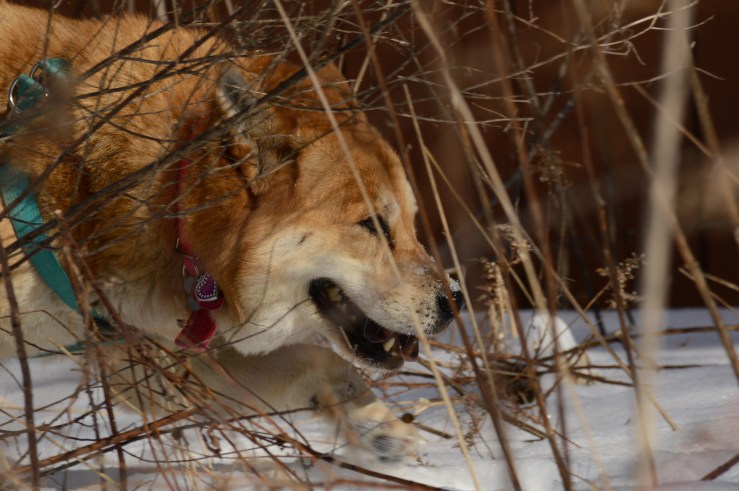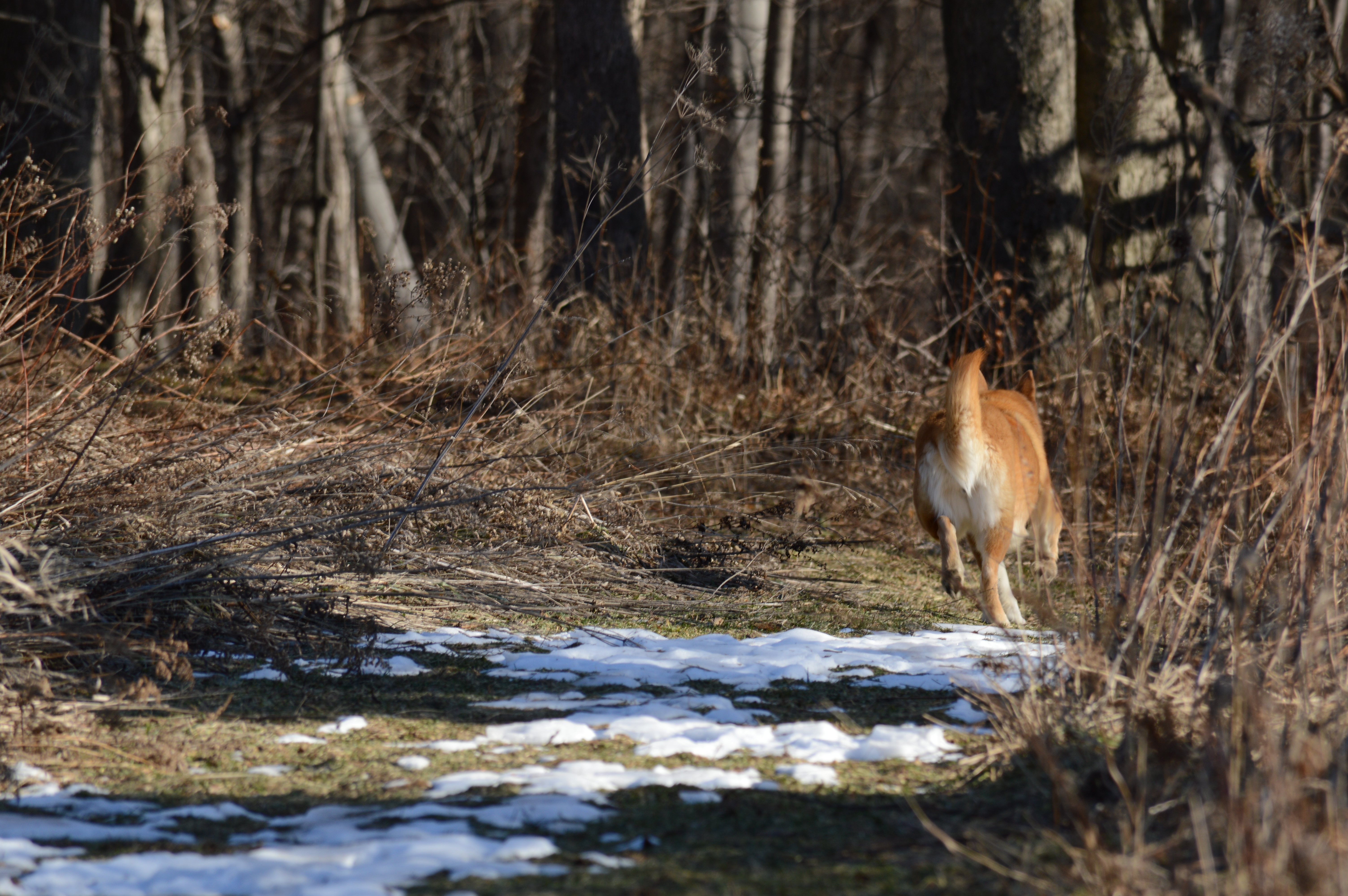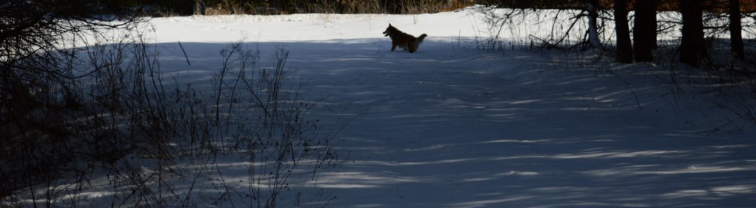 We had a great hike last weekend, around all the trails out back. Snow smells great, and it’s really easy to track things like bunnies and mice. Their scent sticks to the snow, and it’s easier than trying to pick it out of grass. We move slower when my person has snow shoes on. It’s kinda nice to go slower sometimes, though I never think of it. Usually I want to cover as much ground as I can, check out all the trails before it starts to get dark. But when I’m forced to slow down, I notice a lot of things I usually just run past.