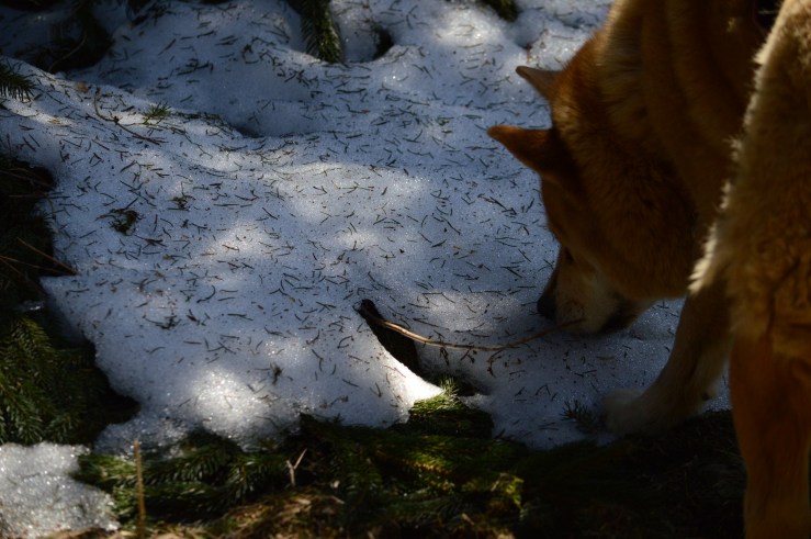 Snow! Snow! Snow! Gosh I love snow. You can eat it and dig in it and run through it. You can spin three turns and have yourself a bed in an instant. And you don’t get overheated on your hike.