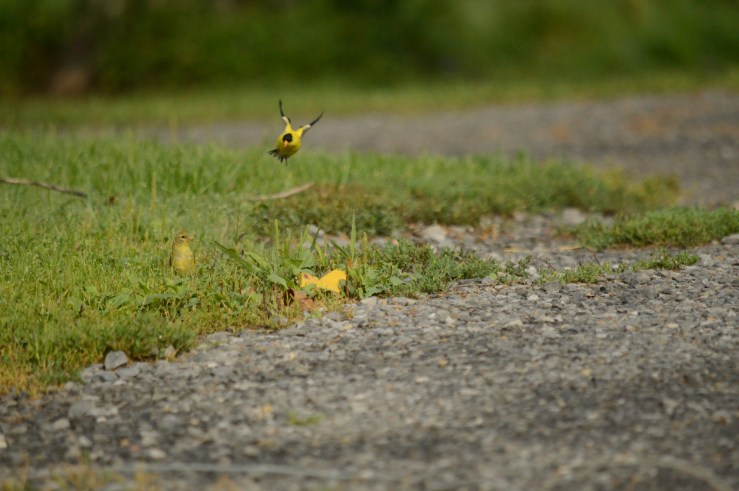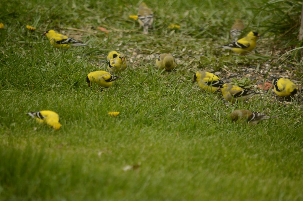 Wandering around the yard by the driveway I found several great bones, some old snack scraps and a few things that I don’t know what they are but they smell edible. Luckily I beat these little yellow birds to them. I guess maybe there’s an upside to putting the snow away sometimes.