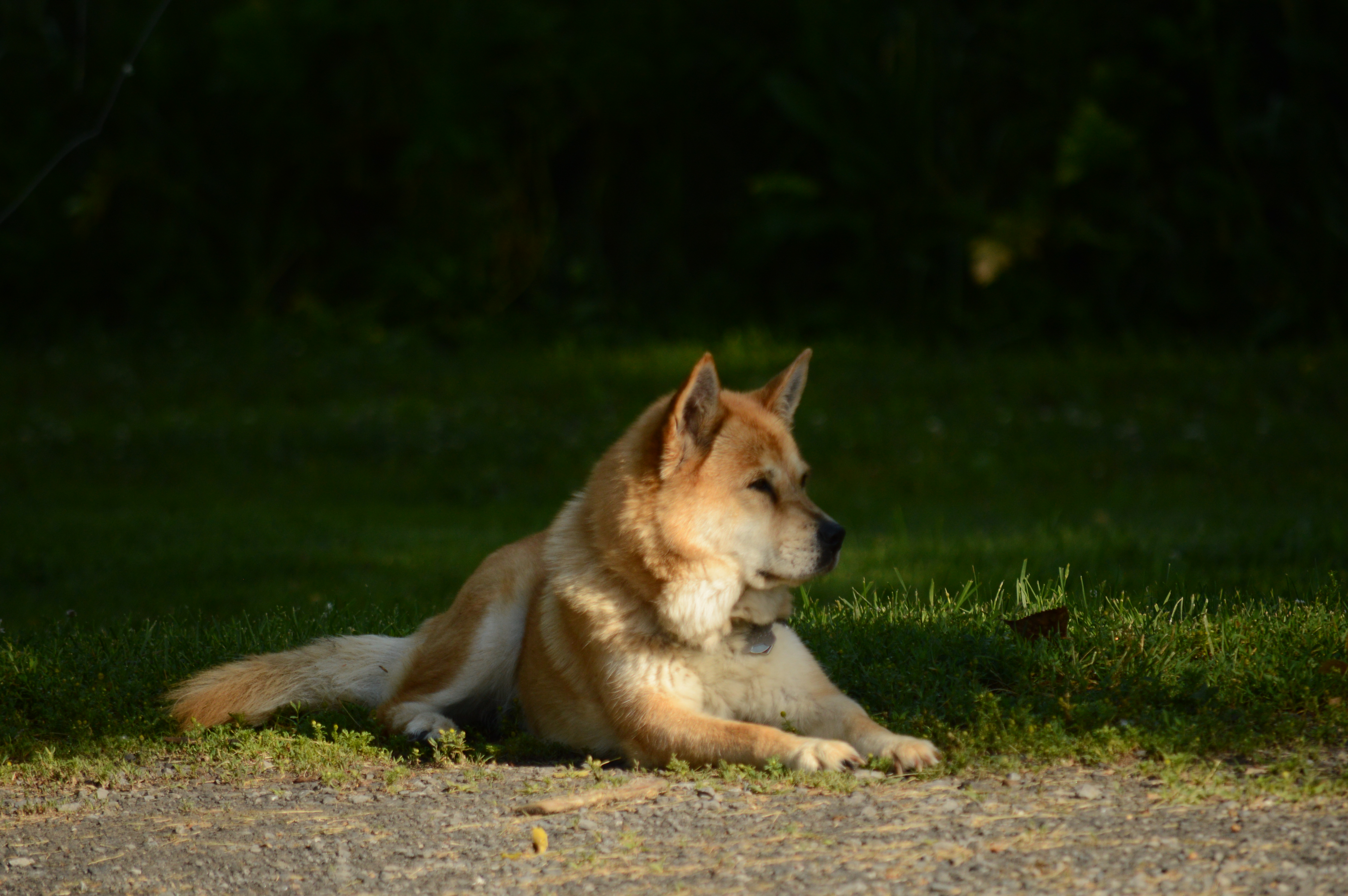 Now he’s here almost all the time and I can spend the entire day outside in the fresh air, on the cool grass, napping or keeping watch. We take nice long hikes at all times of the day. Today it was just after sunrise, so we could enjoy the cool morning before the late summer heat drives us to our water dishes and the shade of the big trees. He watches every sunset with me, and afterward we go to the south lawn, and he sits on the steps listening to The Lone Ranger radio shows until it’s too dark to see when we come into the house. Occasionally he’ll go somewhere and say “Be a good puppy while I’m gone. I’ll be back after a while.”, but not too often, and never for too long.