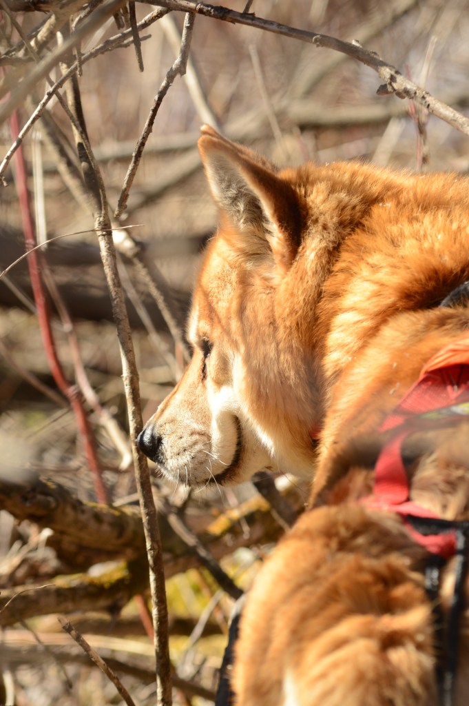 I must admit, even I was happy we had a warm, sunny, springy day to walk in, even if the snow is fading. I really love the snow and the cold weather. My folks are from Siberia, you know, so it’s normal for me. But sometimes the warm sun feels good, and I see we have some different birds in the yard these days.
