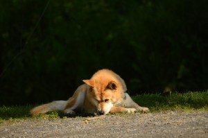 It’s great to see things greening up. This time of year there’s new stuff every week. Different flowers and shrubs growing, and chipmunks everywhere. We got back to Mr. Nishan’s tool shed on the walk, but whatever was living under there must have moved on to better digs. Or maybe no digs. Maybe they didn’t like my burrowing into their nest.